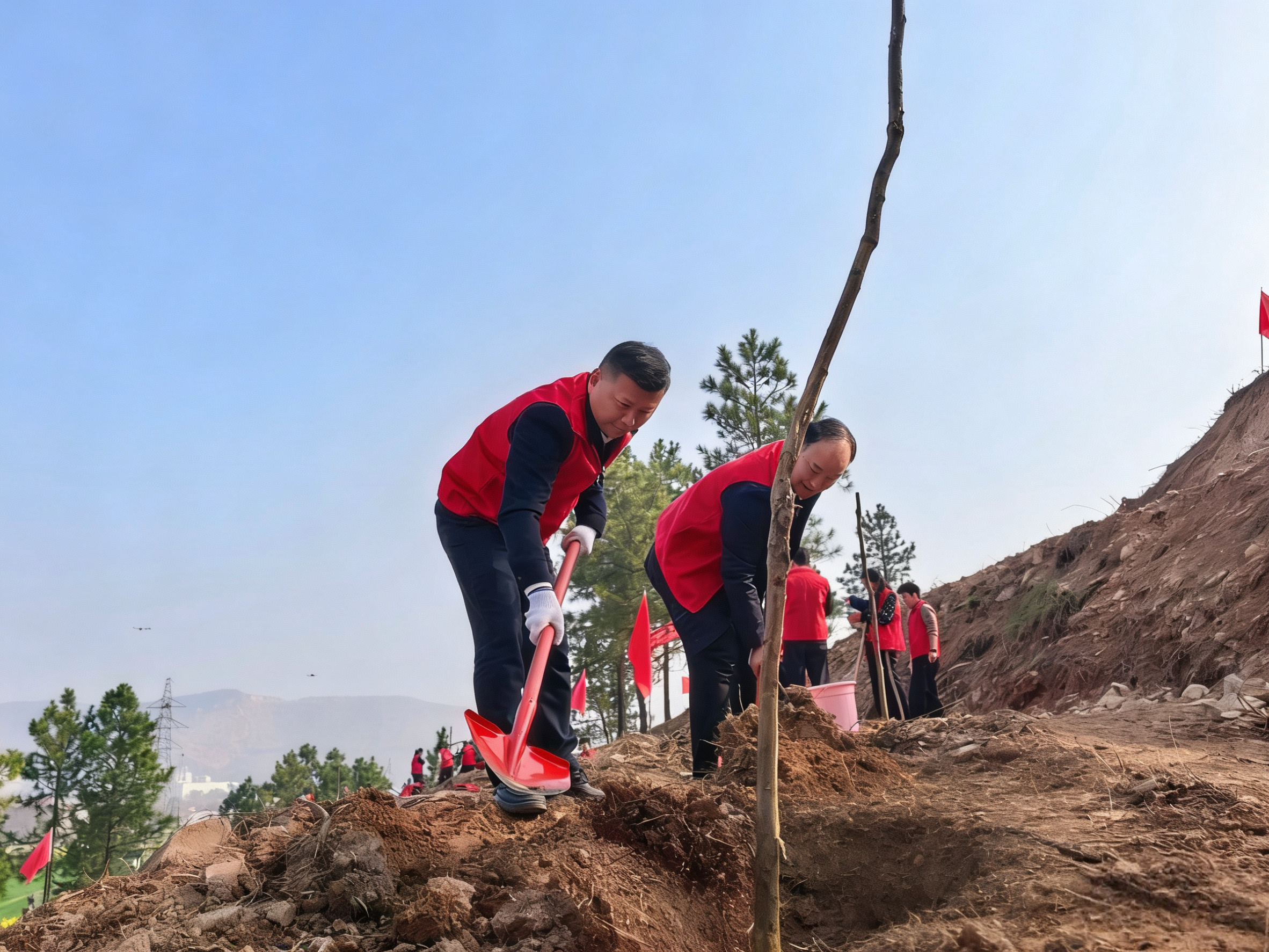 大洪山上,草木吐绿。植树现场,市领导与广大干部群众一起,合力栽下一棵棵皂荚树苗。