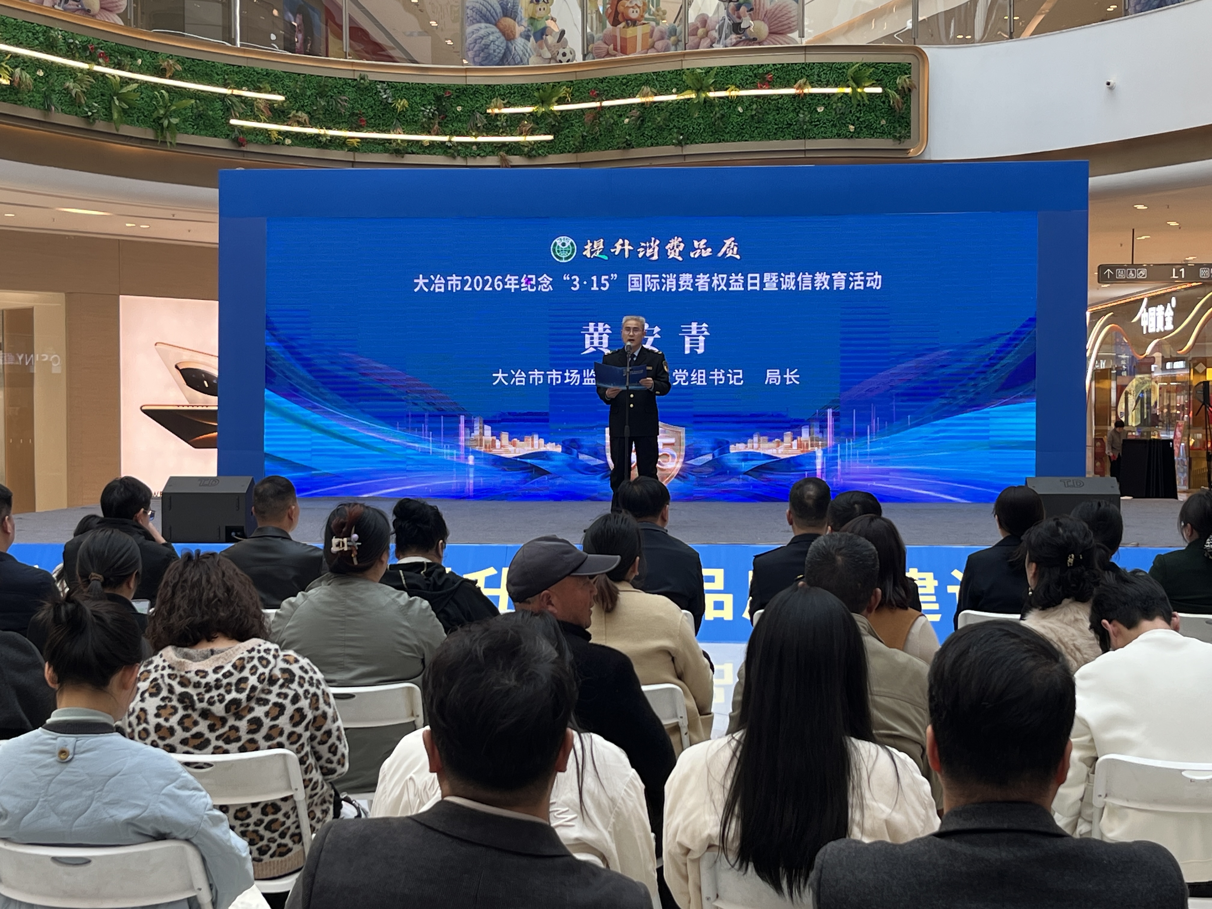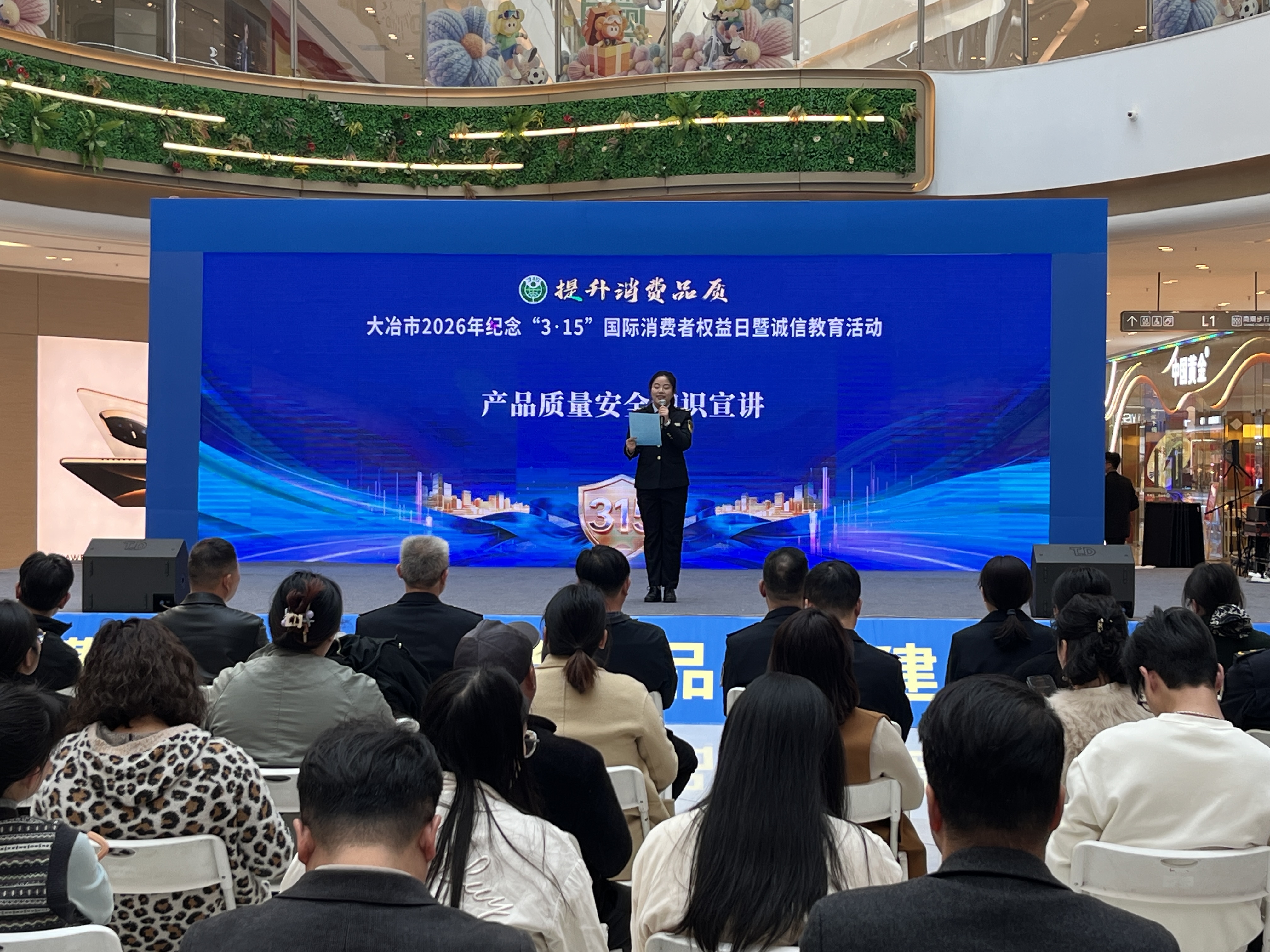 活动现场,市市场监督管理局职工自编自演的诗朗诵和情景剧,将维权知识融入身边故事,引得台下笑声不断。企业代表依次登台,大冶新城吾悦商业管理有限公司分享消费维权经验,佳乐母婴用品店负责人公开承诺“七天无理由退换货”,装饰建材家居商会发起诚信经营倡议,赢得阵阵掌声。