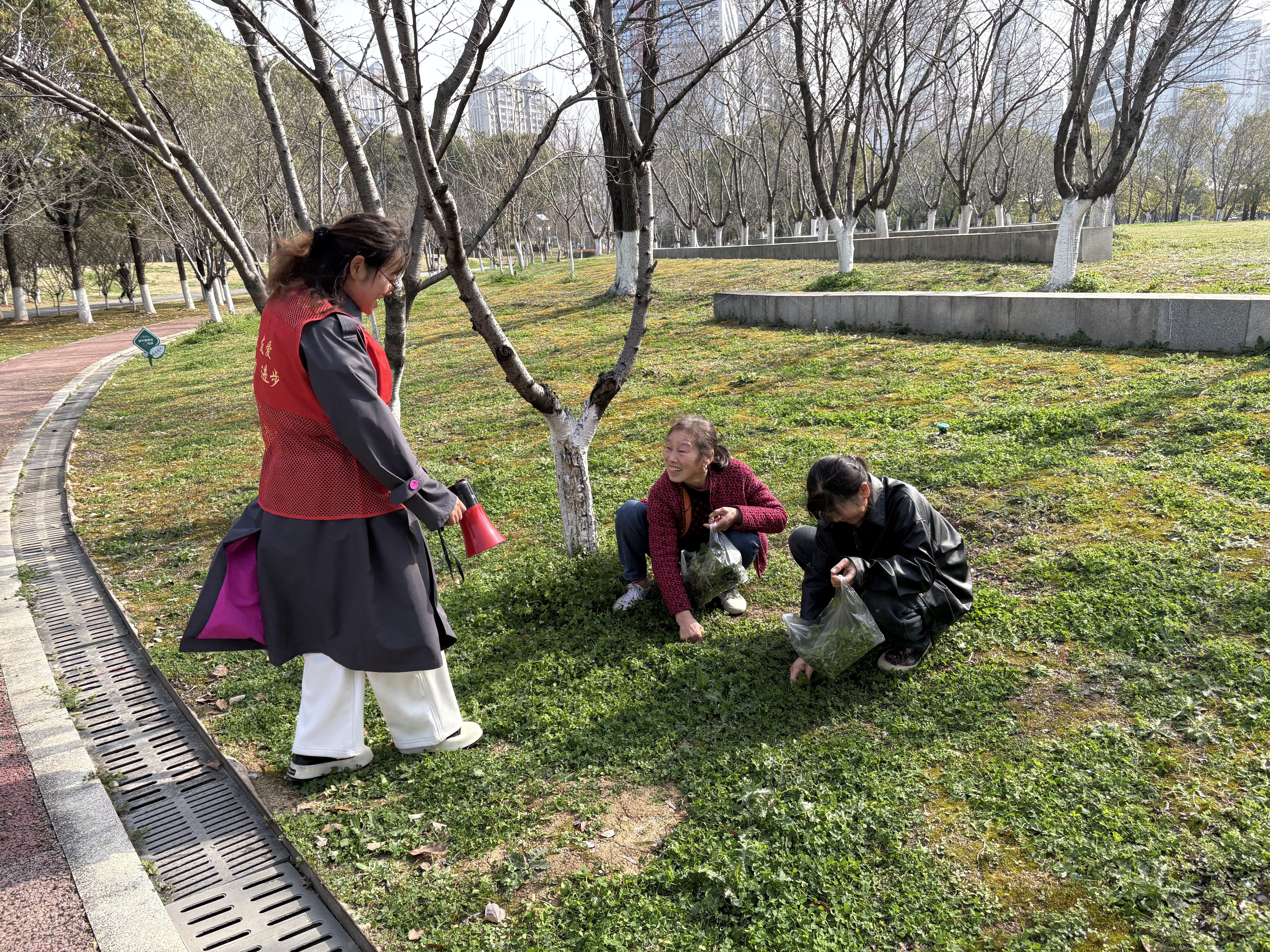 3月13日,市城市公园管理处工作人员在日常巡查中,发现有市民在园区内采挖野菜,当即上前耐心劝阻。“为有效防治病虫害和杂草,公园绿地已统一开展农药喷洒作业,这里生长的野菜普遍存在农药残留,食用后极易引发中毒,恳请大家不要采摘、更不要食用!”工作人员现场反复提醒。