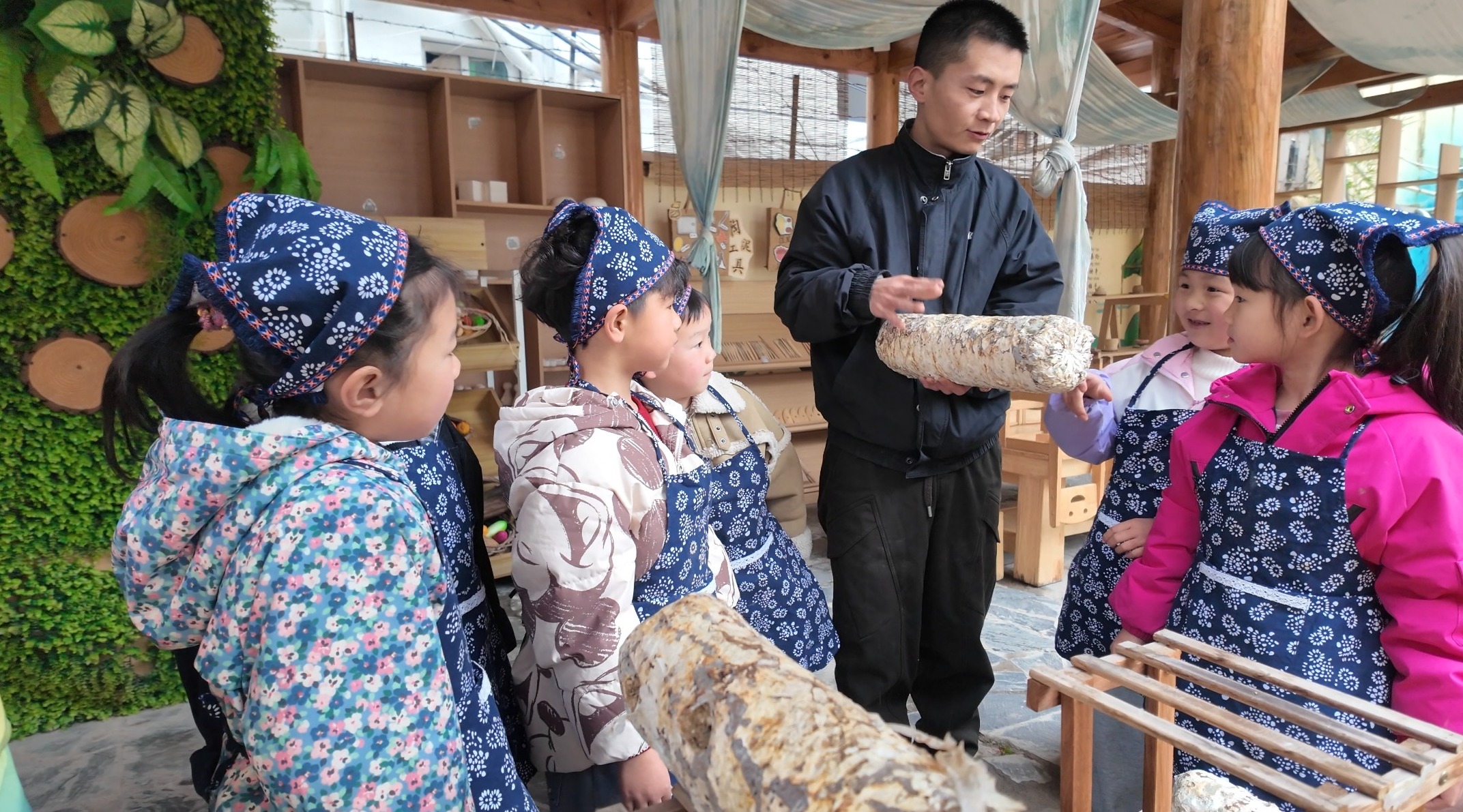 种植人员与教师携手指导,将香菇生长条件、营养价值、循环农业等知识,转化为看得见、摸得着、学得会的实践体验。