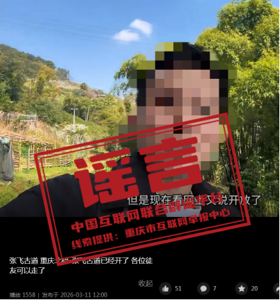 详情:近日,有网民发布视频称“张飞古道已经开了,各位途友可以走了”,“网友说重庆北碚张飞古道重开了”相关话题一度登上某平台同城榜前10。经当地相关部门核实,网传消息不实,张飞古道封闭路段暂未开放。