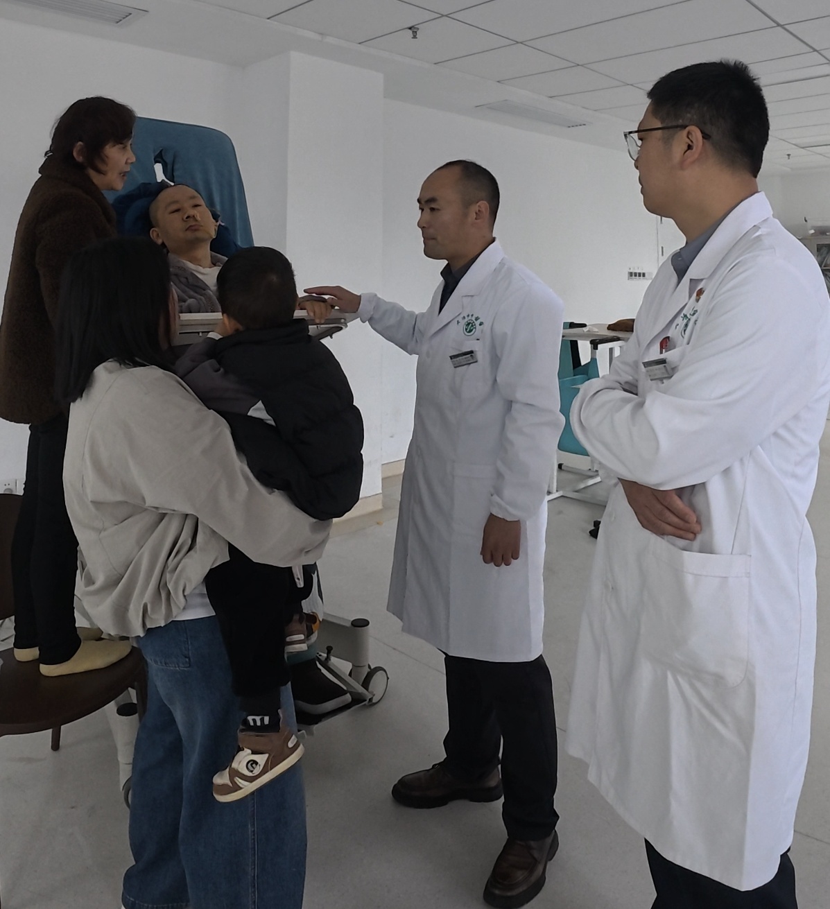 李小双是家中顶梁柱,年迈的父母在外务工,还有两个儿子,最小的不到3岁。得知他的遭遇后,记者主动介入,多方奔走对接优质医疗资源。市中医医院第一时间伸出援手。作为全国县级首家启用“脑机接口临床研究病房”的医院,该院依托与华中科技大学同济医学院的协作优势,在神经康复领域技术领先。