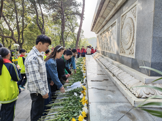 活动现场,全体人员整齐列队、神情肃穆,向革命烈士默哀致敬。默哀完毕,大家手持鲜花,依次缓步走向纪念碑敬献鲜花,以绿色、文明的方式寄托哀思。