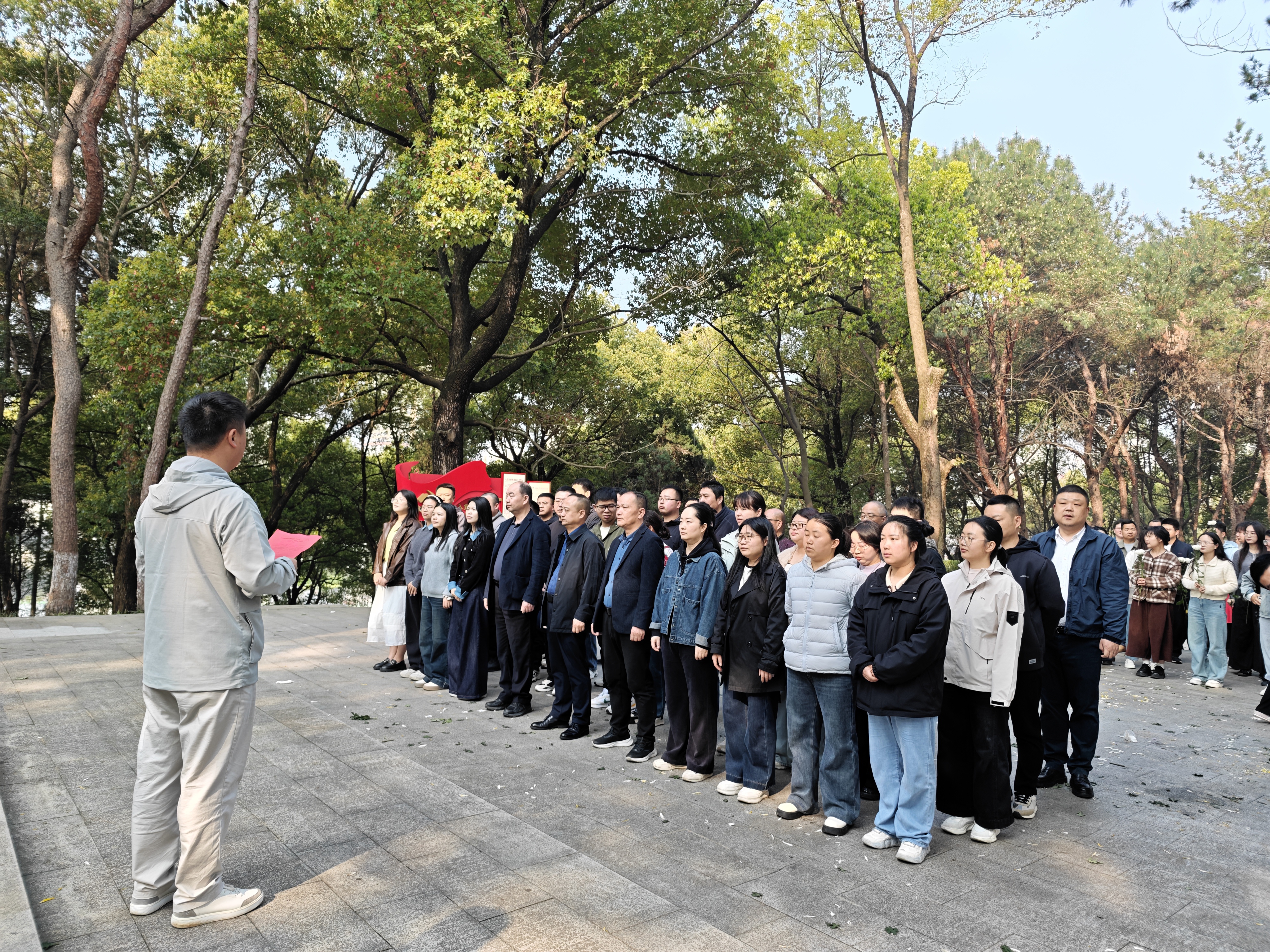 当天上午,全体人员整齐列队,齐声高唱中华人民共和国国歌。大家神情肃穆,向烈士纪念碑敬献花篮,深切缅怀革命先烈的丰功伟绩。随后,全体人员默哀致敬,表达对革命先烈的深切哀思与崇高敬意。