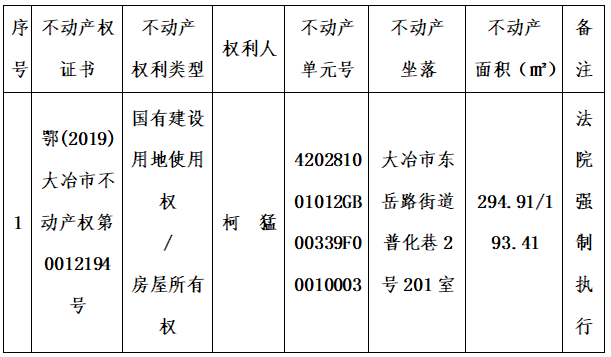 异议书面材料送达地址:大冶市长乐大道大冶市政务服务中心大楼二层市不动产登记中心