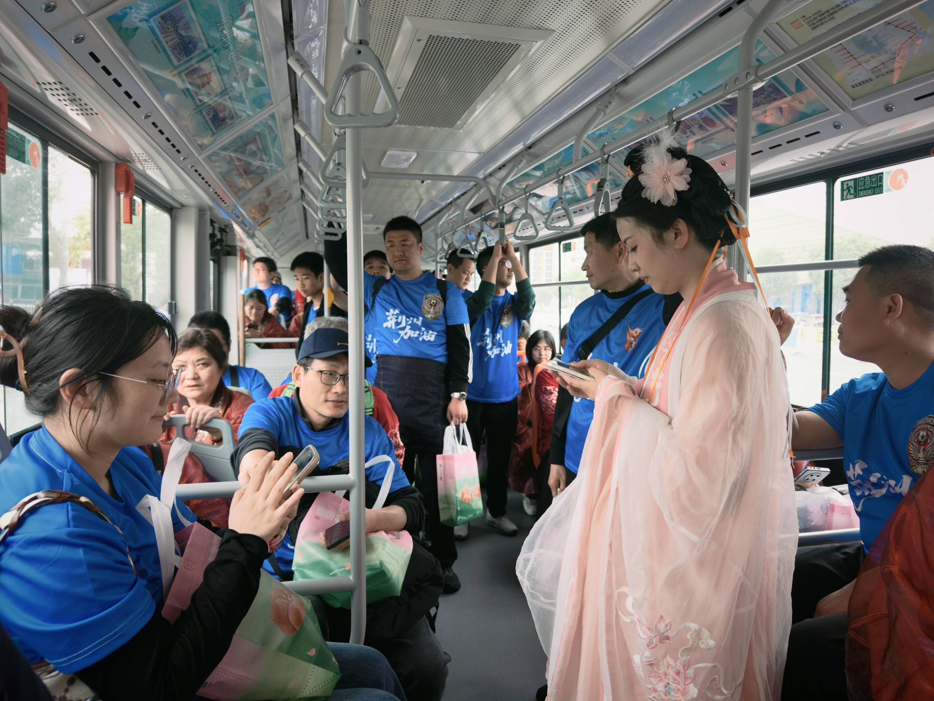 现场,荆州100人“楚风”啦啦队身着特色战国袍,擂战鼓、跳古风舞蹈,高喊“楚王出征、战无不胜”口号,为荆州队加油助威;大冶志愿者们化身服务先锋,搭建沉浸式楚风欢迎场景,开展趣味国风互动游戏,精心准备上冯土鸡汤等本土特色美食,主动向荆州球迷推介大冶历史文化与优质旅游资源。在身着楚风服饰的工作人员与志愿者引导下,荆州球迷们有序搭乘七大主题公交接驳车前往赛场。