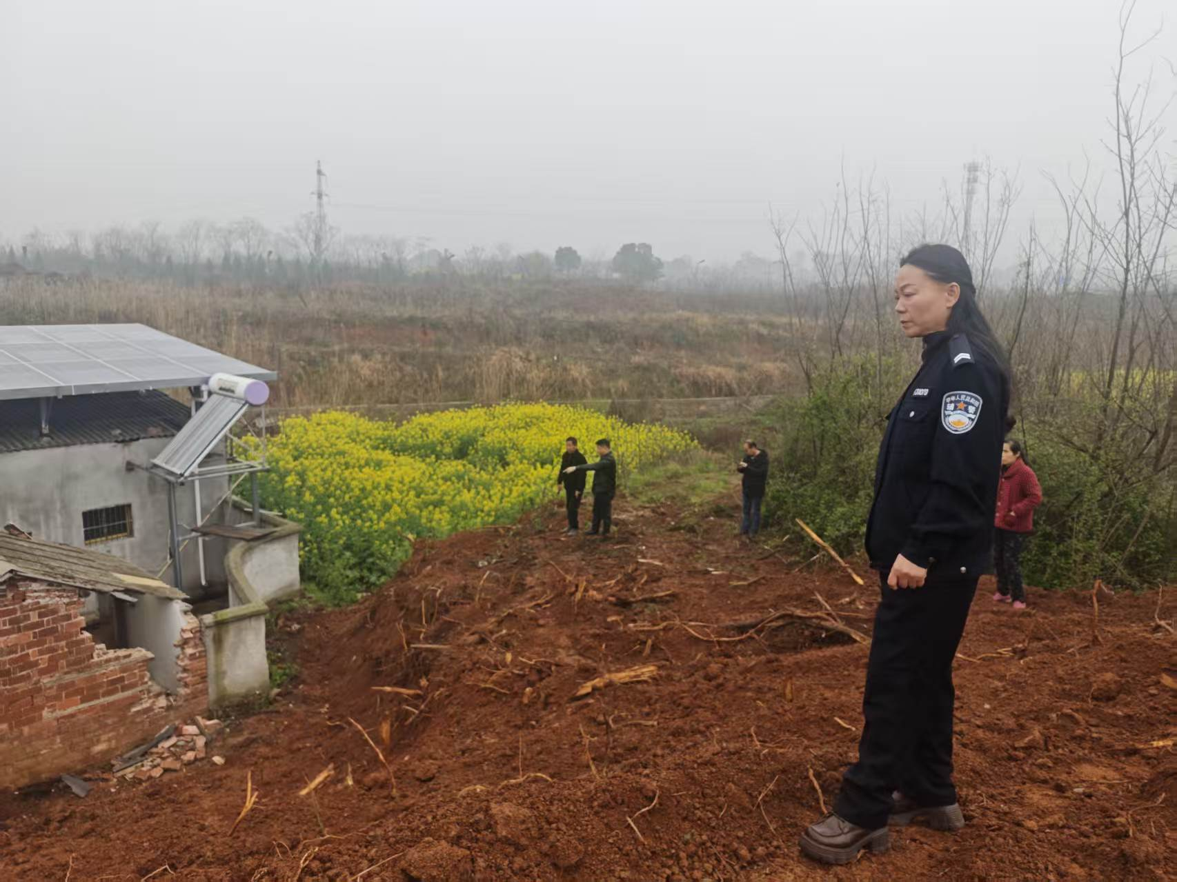 在民警与村干部的耐心调解下,夏某梅和胡某炎逐渐冷静下来,都意识到自身的不当之处,最终达成一致调解协议:夏某梅将挖掘的公共土地恢复原貌,可以做排水沟,但不能挖后背山;胡某炎负责修复夏某梅家被损坏的厨房。