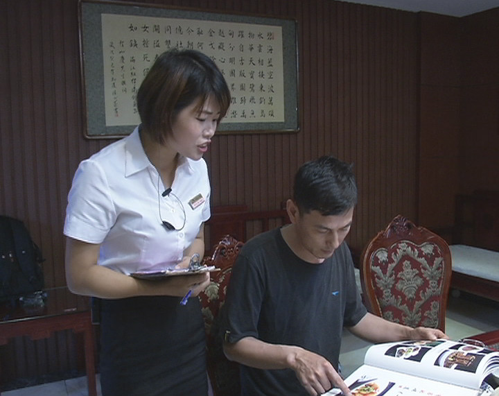 昨天上午,在钓鱼岛酒店餐饮部,服务员曹薇薇正在接待一名顾客。顾客告诉她,这次吃饭他们将要来12个人,曹薇薇随即对他进行提醒。