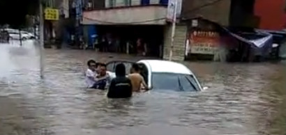 云上大冶报道 6月30号上午,大冶突降大雨,城区多路段积水严重,一辆白色小轿车被困水中无法开门,危急时刻,正在路段疏导交通的协警们跳入水中开展救援,在路人的协助下,成功将人救了出来。