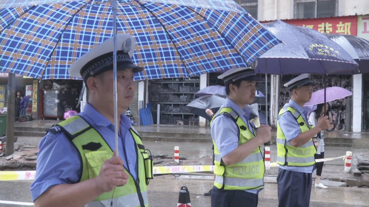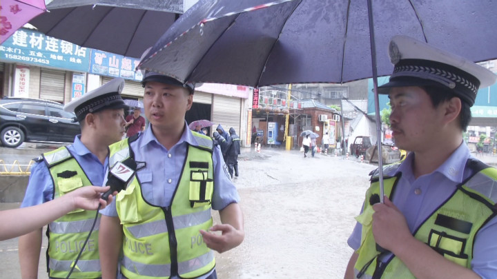 商铺店主 李发坤:当时他的车子往那边冲,冲到中间熄了火。车子就飘过去了。协警看到他车子停了,就把门打开把人抱上去,又有四名协警把车子往这边抬。