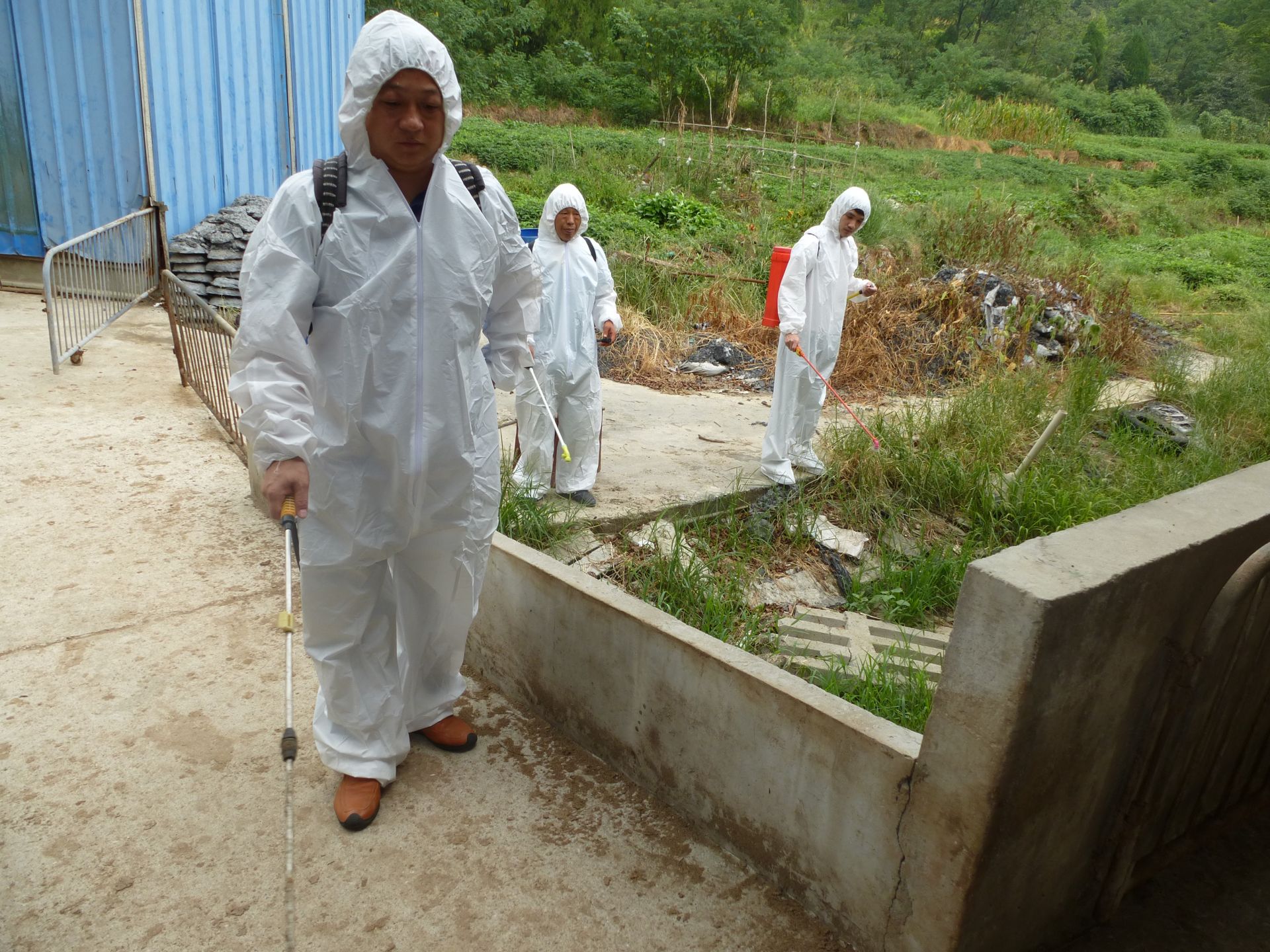 两个半小时后,这家养殖场的消毒灭源工作全部完成,而他们三人全身的衣服早已湿透了。