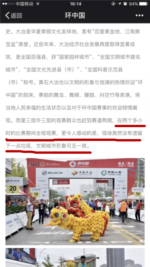 前方传来捷报,2017环中赛今日在珠海横琴完美收官,大冶赛段因为“最好的文明秩序、独有的花车和独特的劳动模范道德模范组成的荣誉骑行”荣获最具特色赛段!