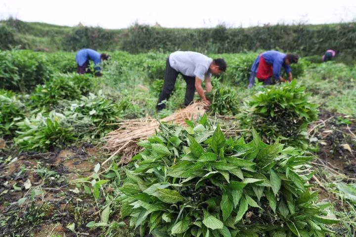 △2017年10月,贵州丹寨县农业产业扶贫项目——板蓝根种植喜获丰收。(图自视觉中国)