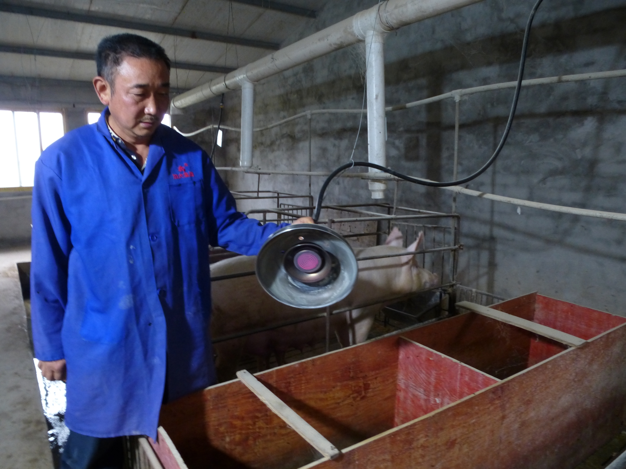 看着记者好奇地望着这些灯泡,曹国强接着介绍,“这可新鲜了。天黑了,它可以照明;天冷了,它可以给仔猪取暖,提高仔猪的成活率。”